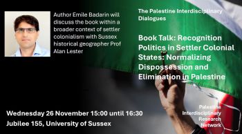 Join us for a conversation with Dr Emile Badarin (University of Exeter) about his new book Recognition Politics in Settler Colonial States: Normalizing Dispossession and Elimination in Palestine (Bloomsbury, 2025). The discussion will be chaired by Professor Alan Lester (Geography, School of Global Studies).