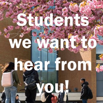 Students are invited to take part in an open office session with Professor Kate O’Riordan, Pro-Vice-Chancellor (Education and Students), and Lewis Wilson, the Students’ Union Education and Employability Officer. The session is a chance for Kate and Lewis to hear directly from you about what you are enjoying at Sussex, along with any ideas you may have to help improve the student experience.